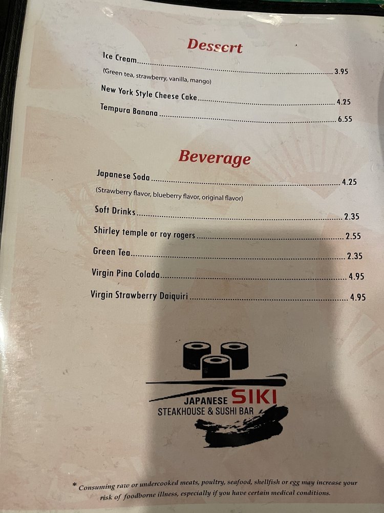 Siki Japanese Steakhouse and Sushi Bar Menu